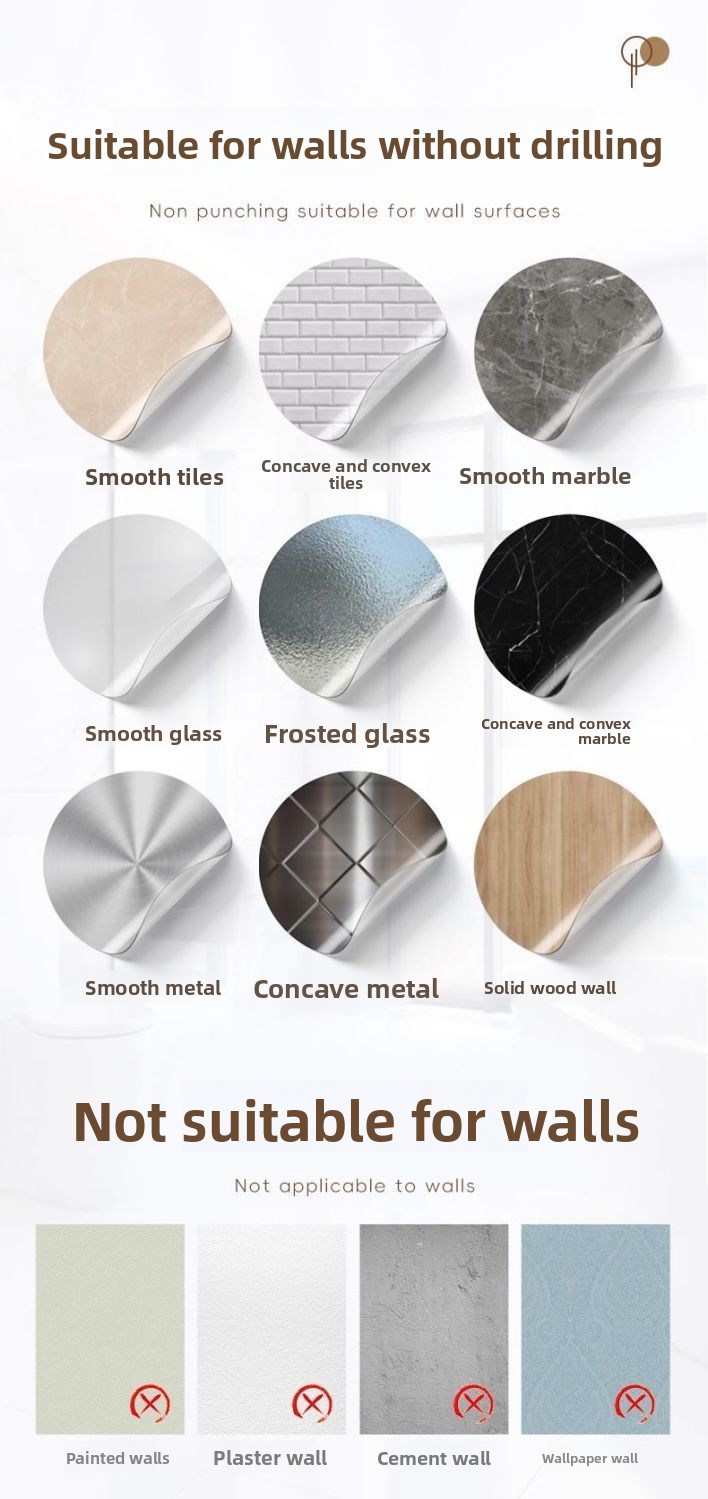 Versatile Mounting: Suitable for various bathroom surfaces including tiles and mirrors