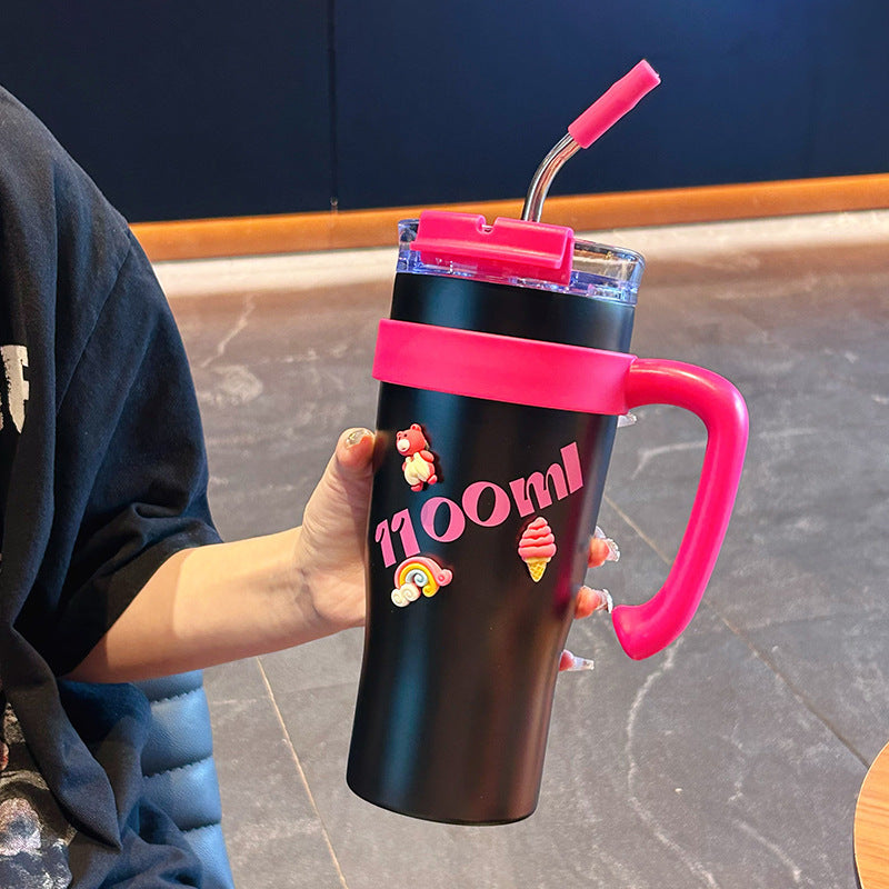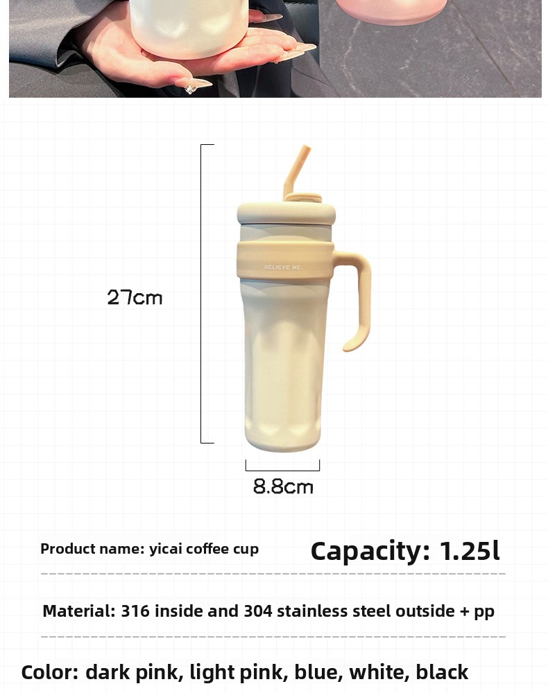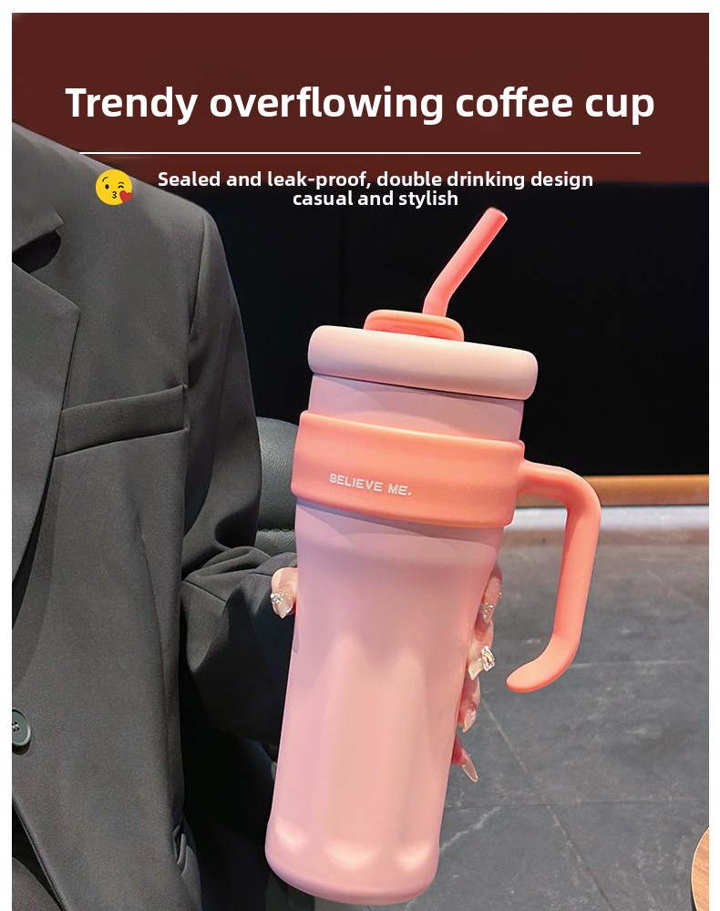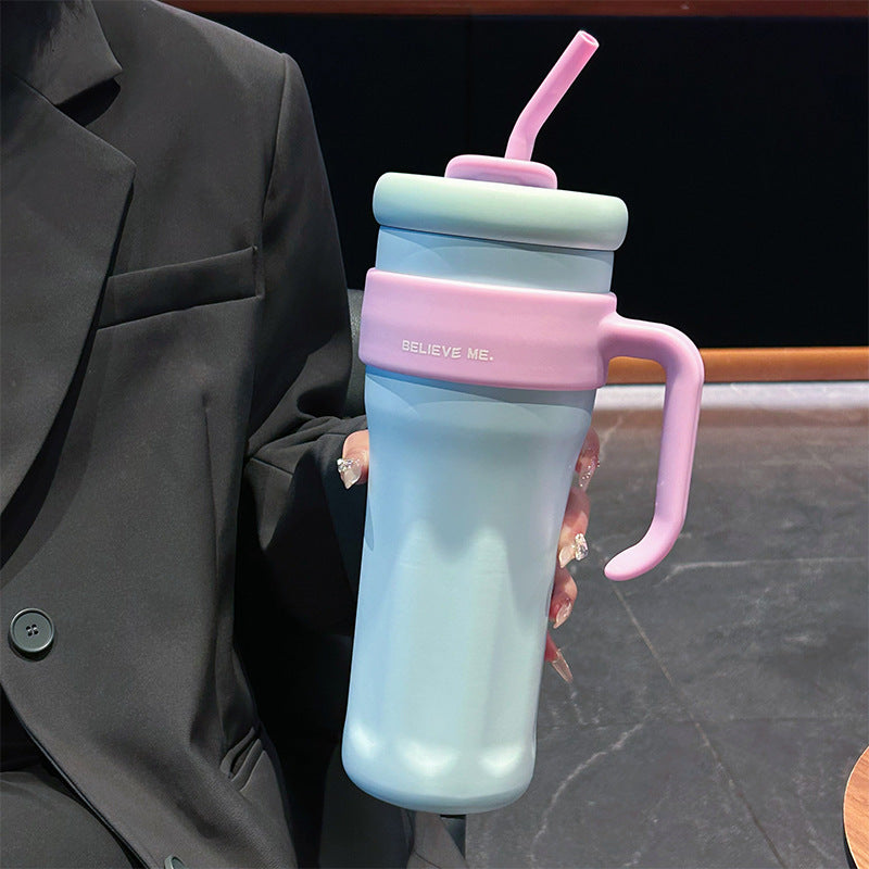 Dual Drinking Options: Features a handle for easy carrying and a straw for convenient sipping.
