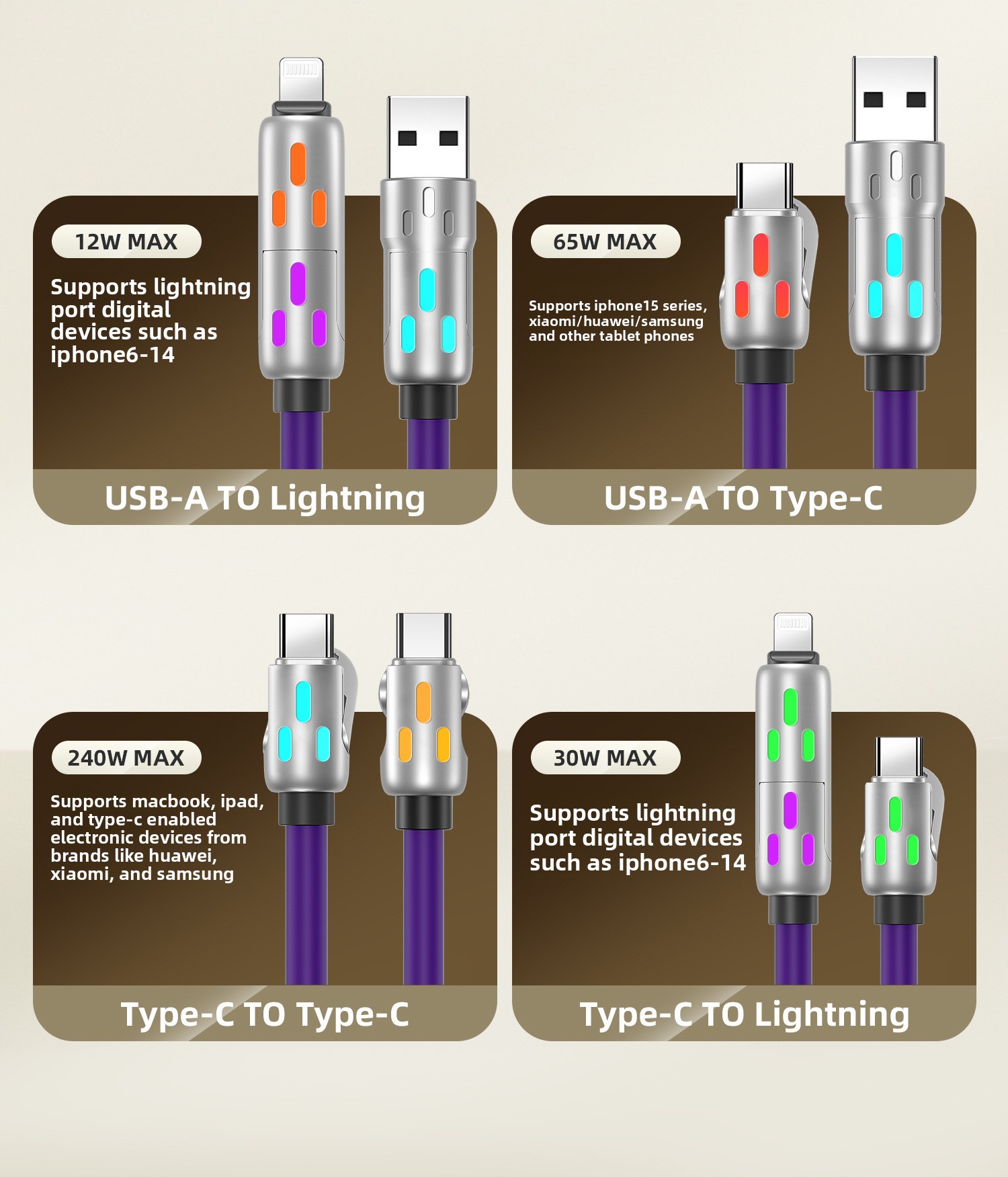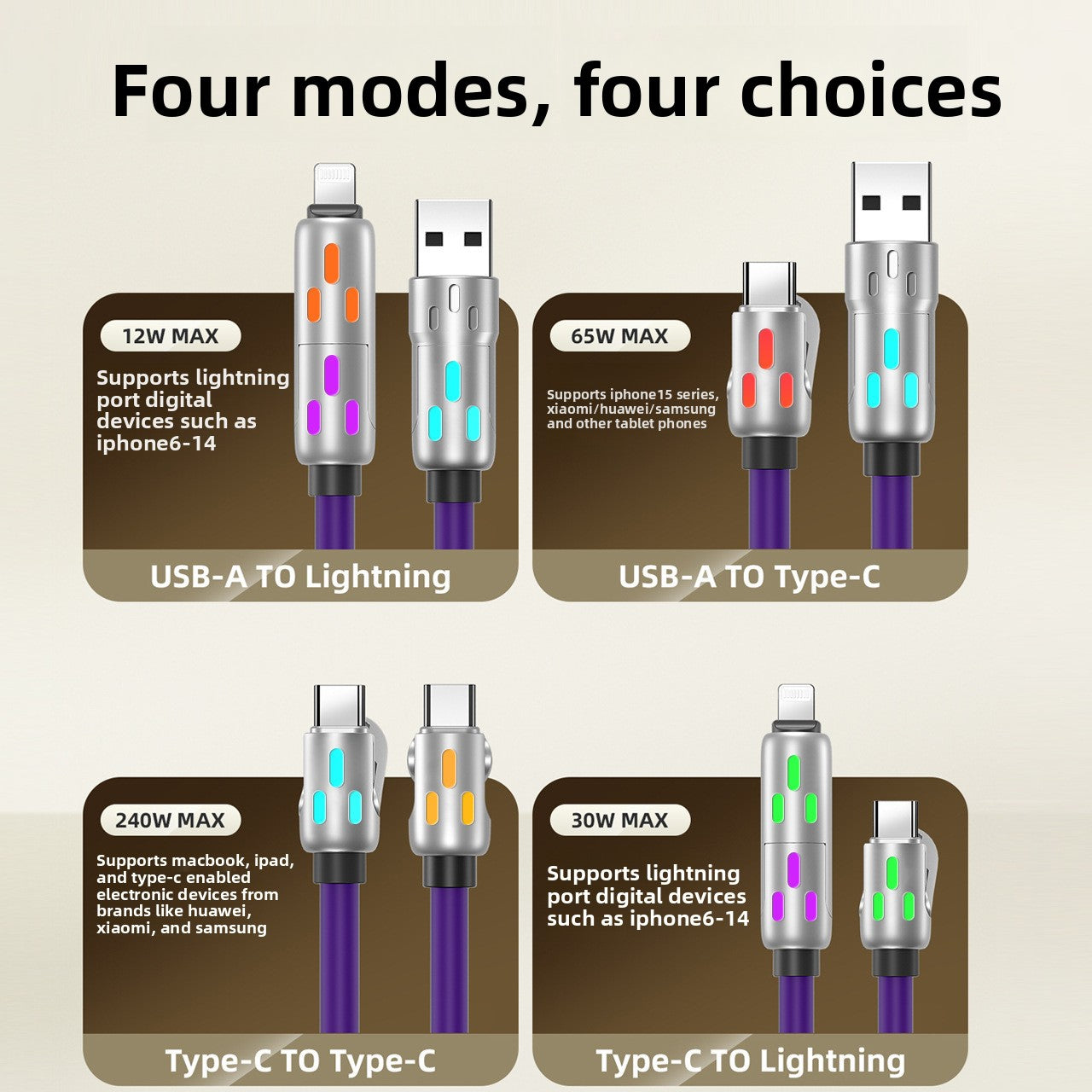 Multi-Interface Compatibility: Supports Lightning, Micro USB, and Type-C connections for versatile device charging.