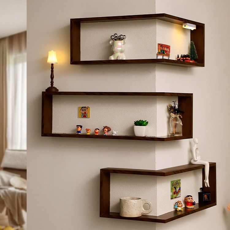 این قفسه دیواری گوشهای ۹۰ درجه به گونهای طراحی شده است که از فضای گوشه اتاق نشیمن شما نهایت استفاده را ببرد.