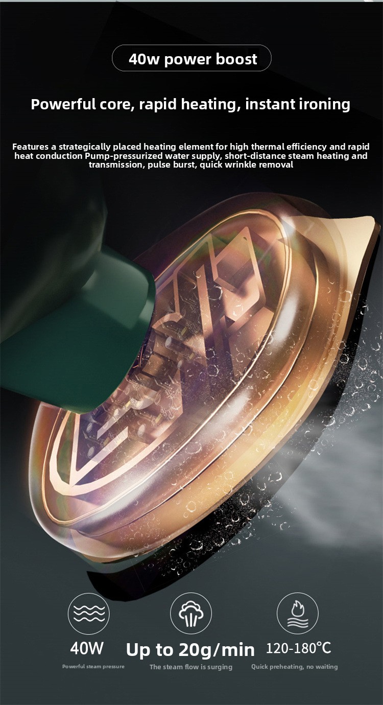 Steam Technology: Delivers efficient wrinkle removal with continuous steam output for quick garment care.