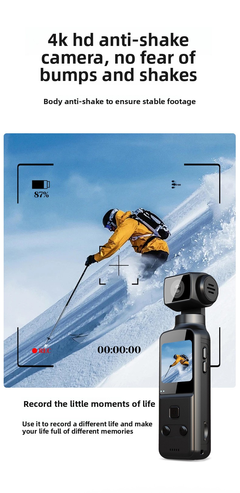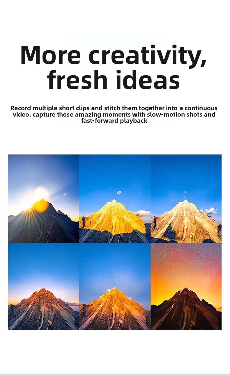 Versatile Shooting: Supports loop recording, time-lapse, slow motion, and anti-shake functions